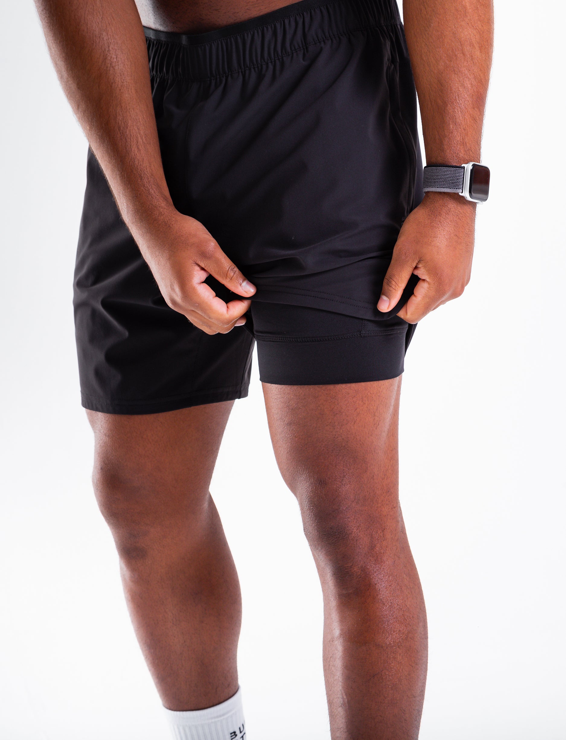 Built For Athletes Men's Training 2 in 1 Short - מכנסי אימון 2-ב-1 לגברים בצבע שחור