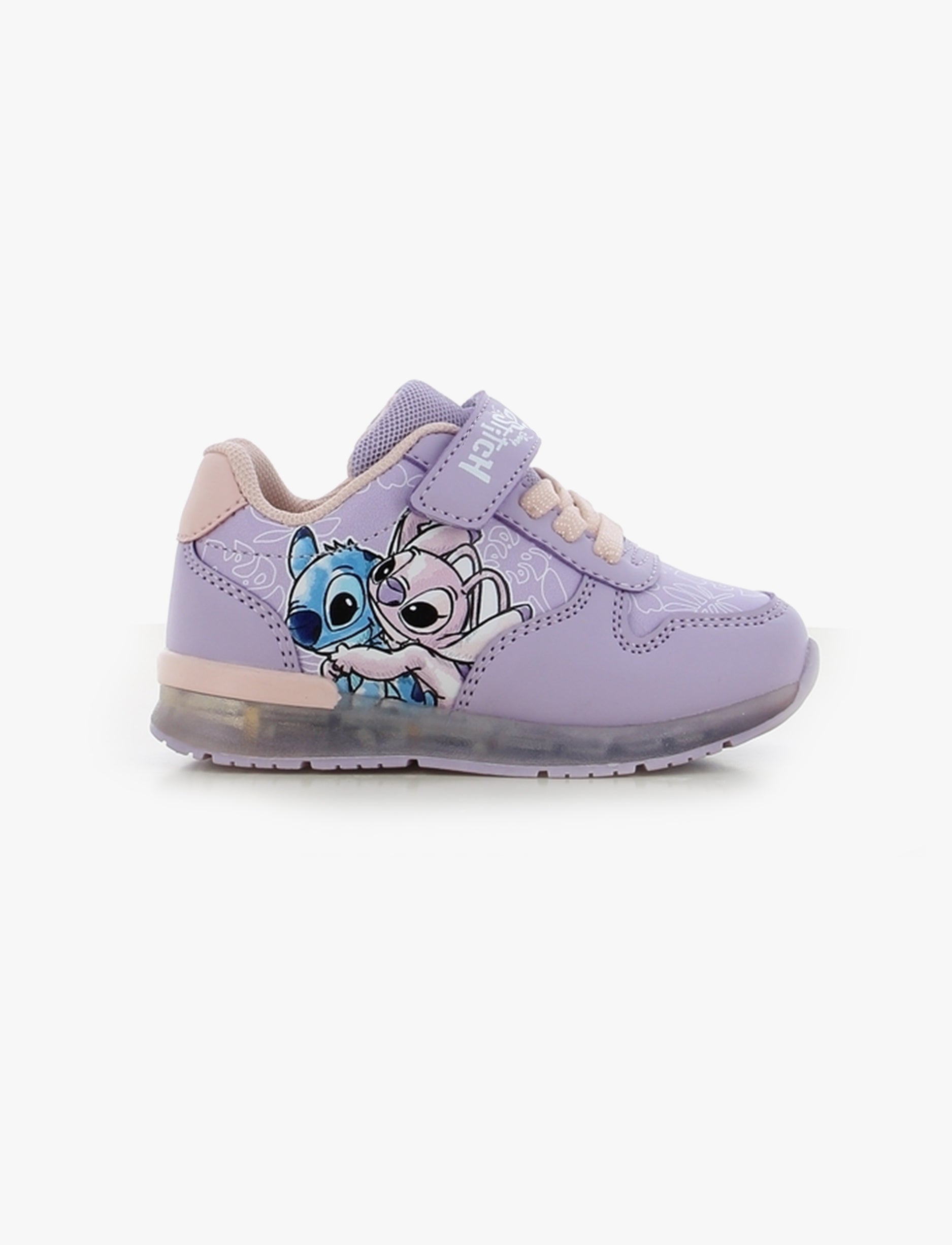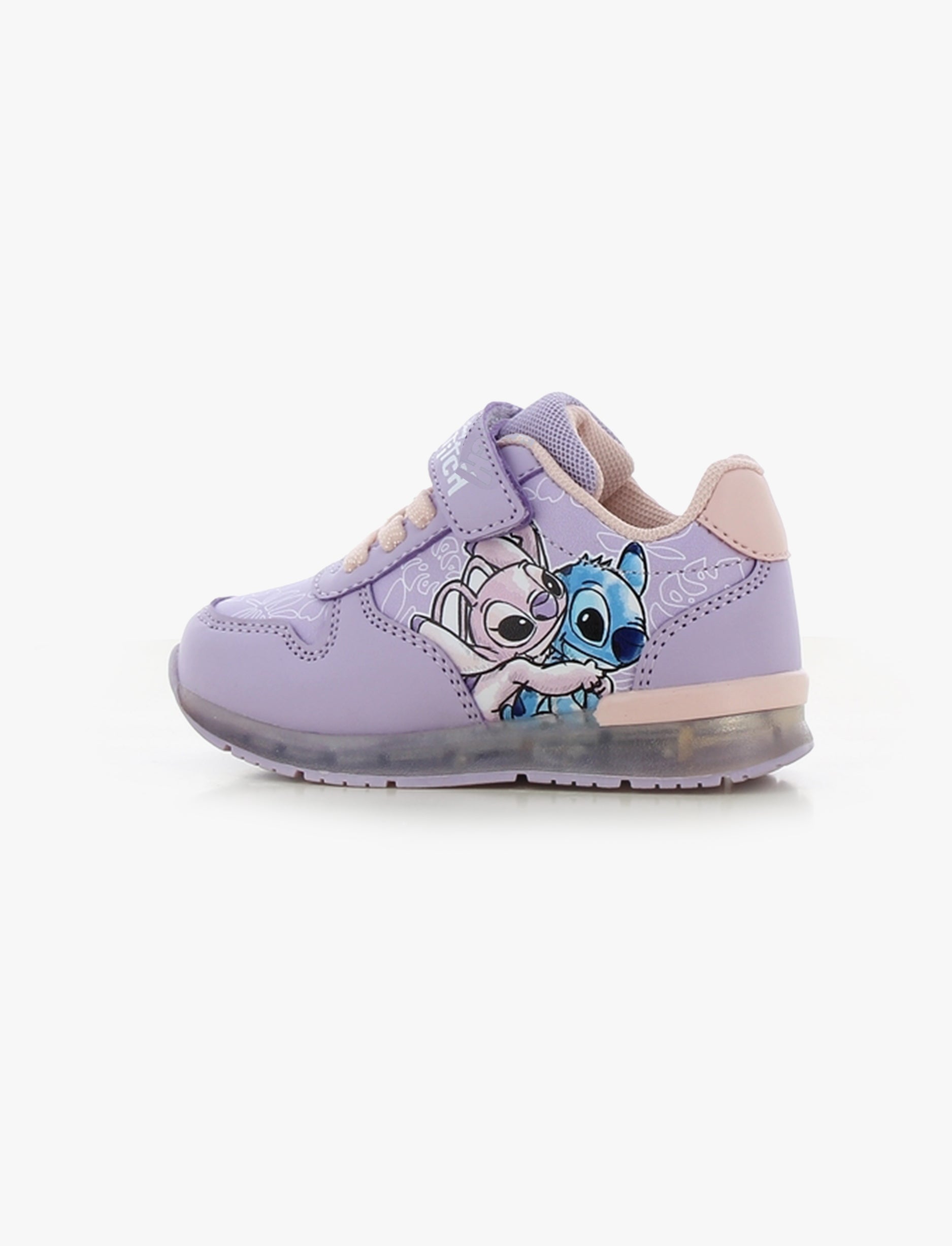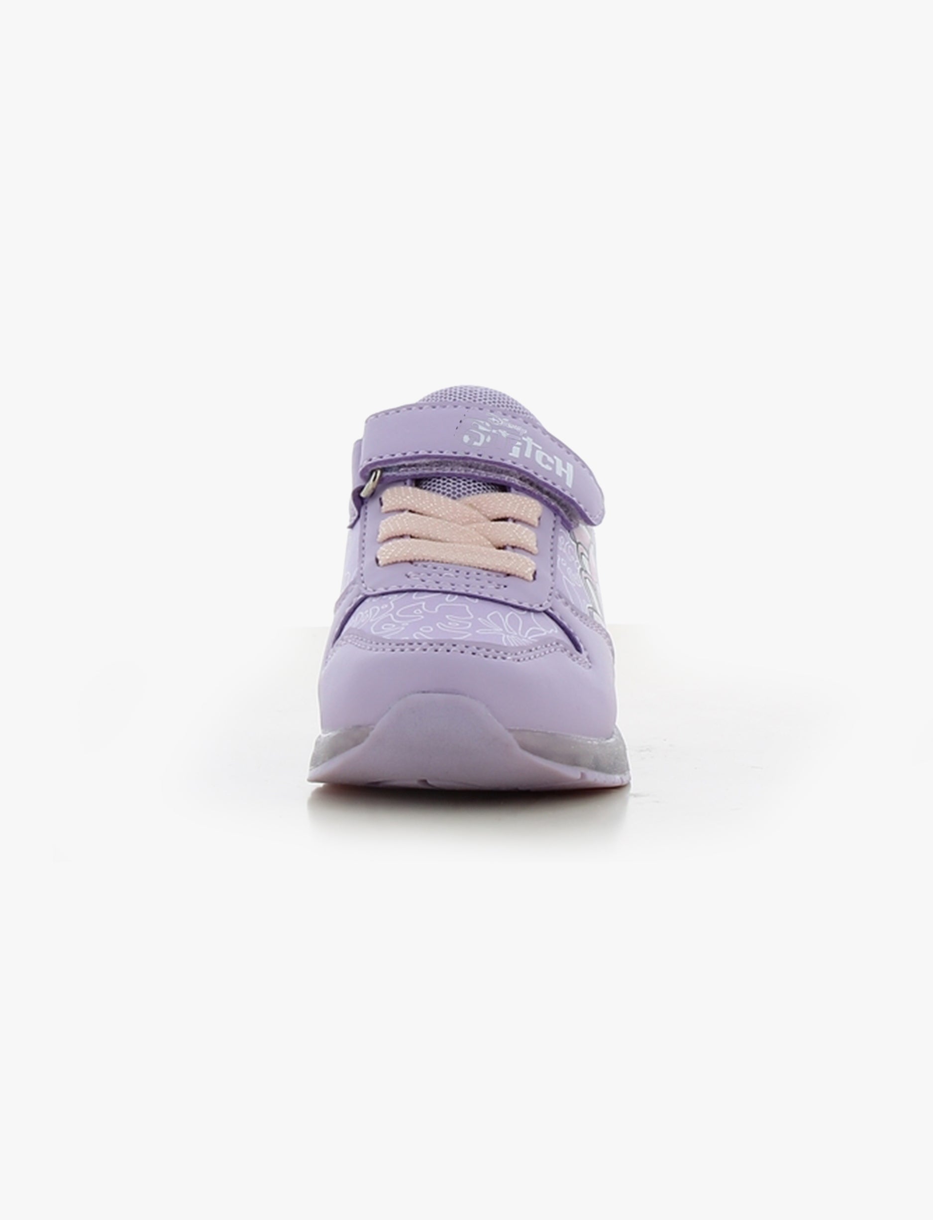 נעלי סניקרס לילדות בעיצוב צבעוני ושמח עם דמות סטיץ’ האהובה, המשלבות נוחות יומיומית עם אפקט תאורה מהנה. הדגם כולל שילוב גוונים עדין של לילך בהיר וורוד בהיר, הדפסים דקורטיביים ורצועת סקוץ’ לנעילה קלה והתאמה נוחה.