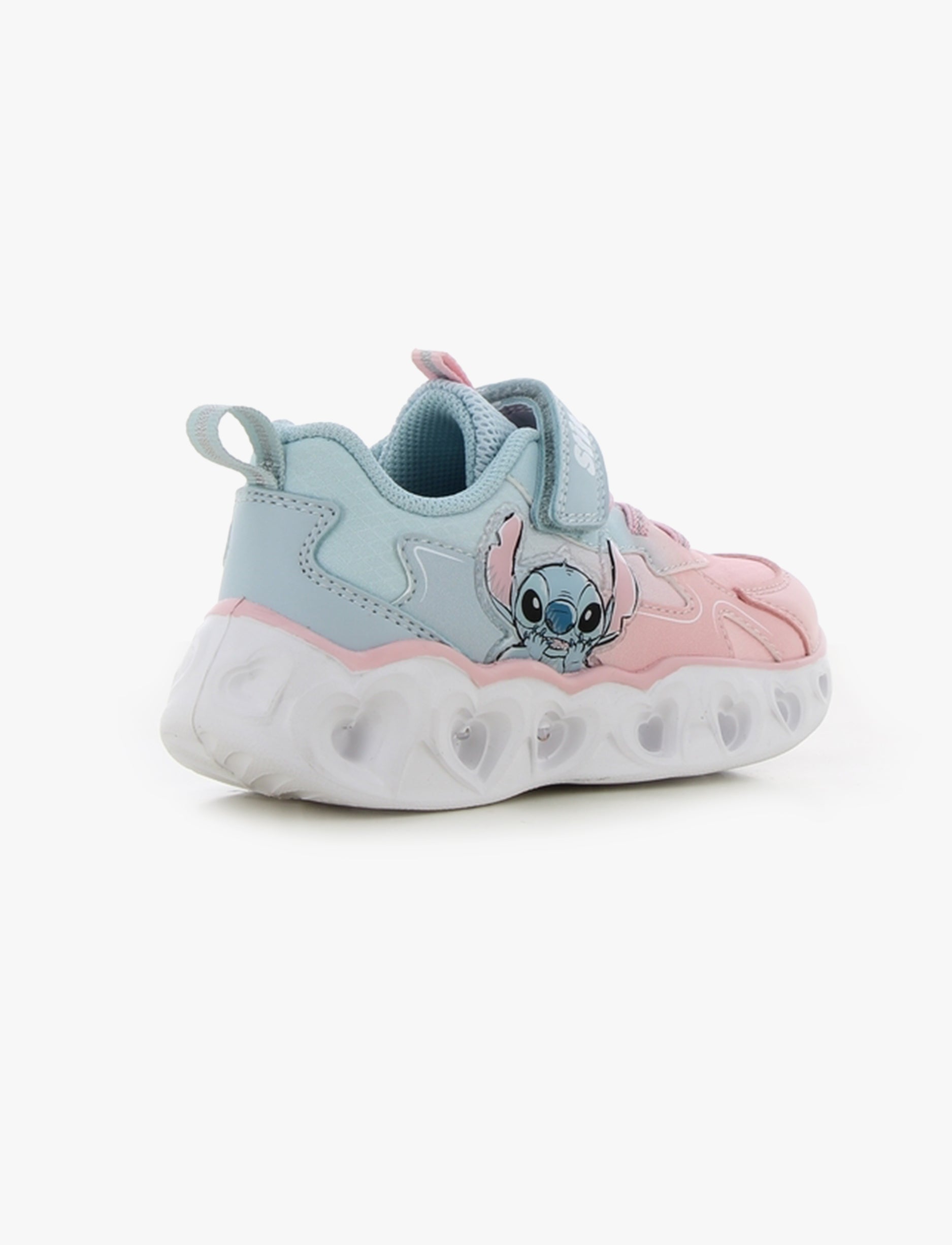 נעלי סניקרס לילדות בעיצוב מתוק וצבעוני עם דמות סטיץ’ האהובה, המשלבות נוחות יומיומית עם מראה ייחודי ואפקט תאורה מהנה. הדגם כולל שילוב גוונים רך של ורוד וכחול בהיר, הדפס דקורטיבי ורצועת סקוץ’ קדמית לנעילה קלה והתאמה נוחה.