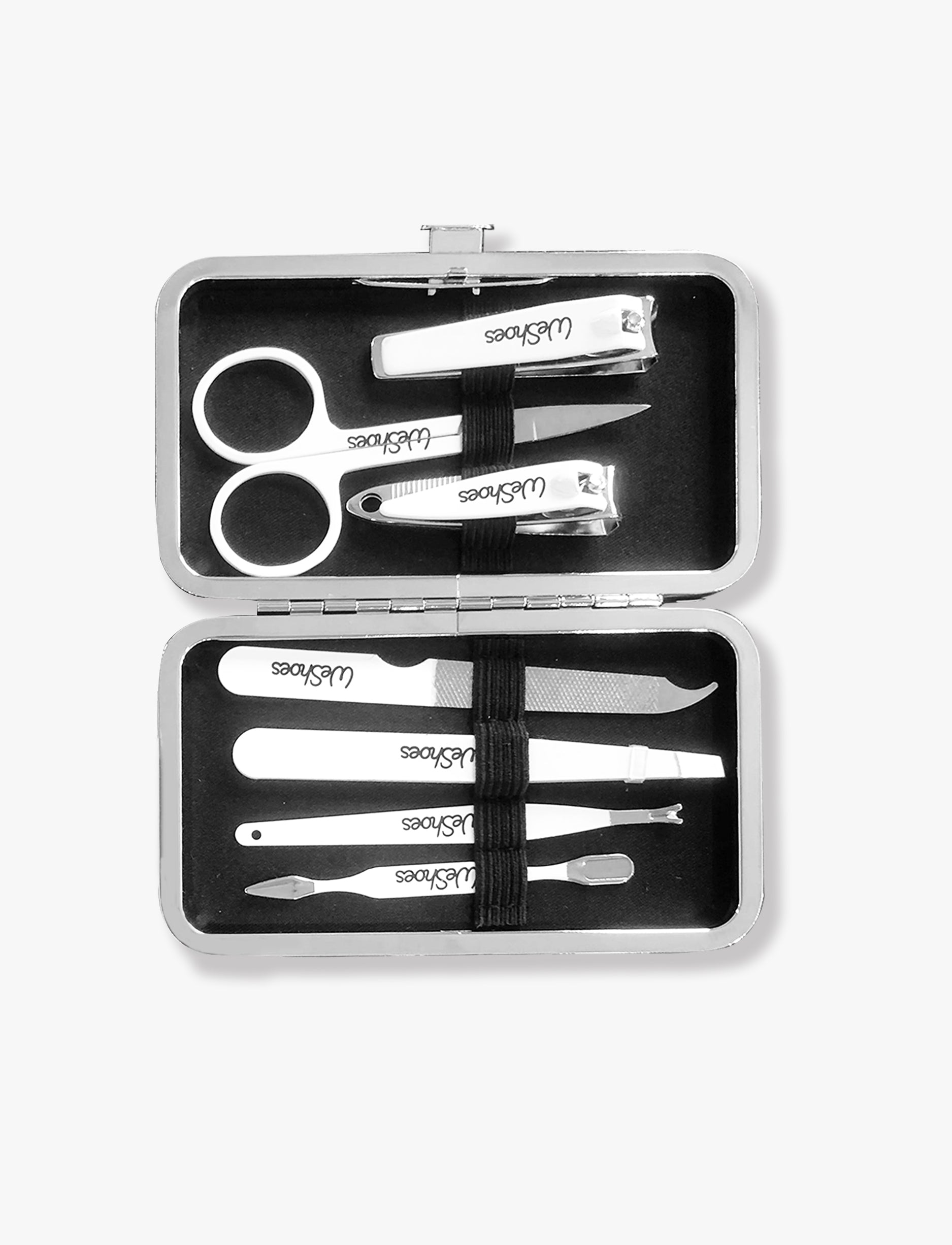 ערכת מניקור ופדיקור של WeShoes מאפשרת טיפוח ציפורניים מדויק ונוח בבית או בדרכים. הערכה מגיעה בקופסה קומפקטית וקשיחה השומרת על הכלים מסודרים ומוגנים, כך שניתן לקחת אותה בקלות לנסיעות או לשימוש יומיומי. הכלים עשויים מתכת עמידה ואיכותית ומאפשרים טיפול מלא בציפורני הידיים והרגליים בצורה נוחה ומדויקת. המבנה הפנימי של הקופסה כולל רצועות אלסטיות המחזיקות את הכלים במקומם ומאפשרות שליפה קלה בזמן השימוש.