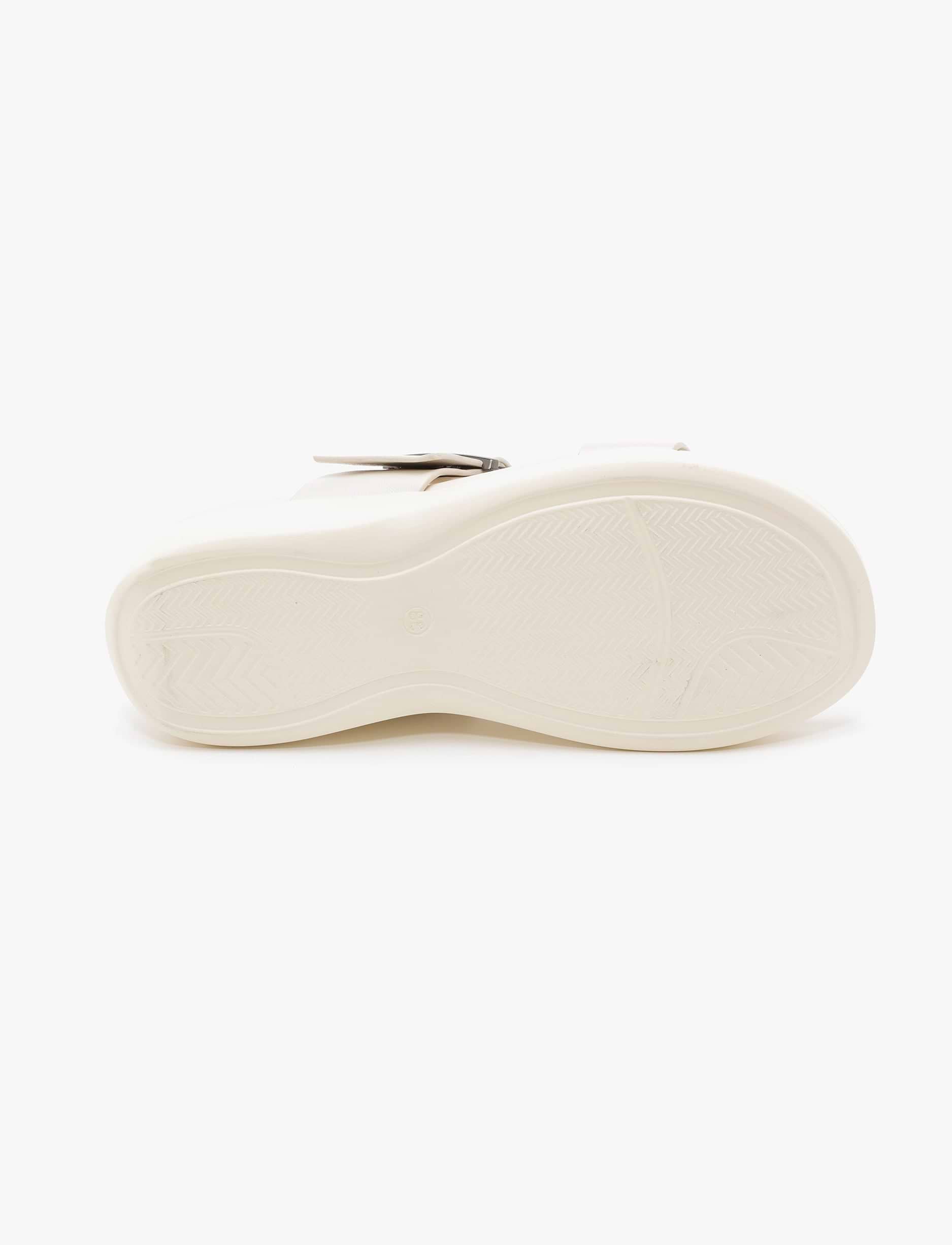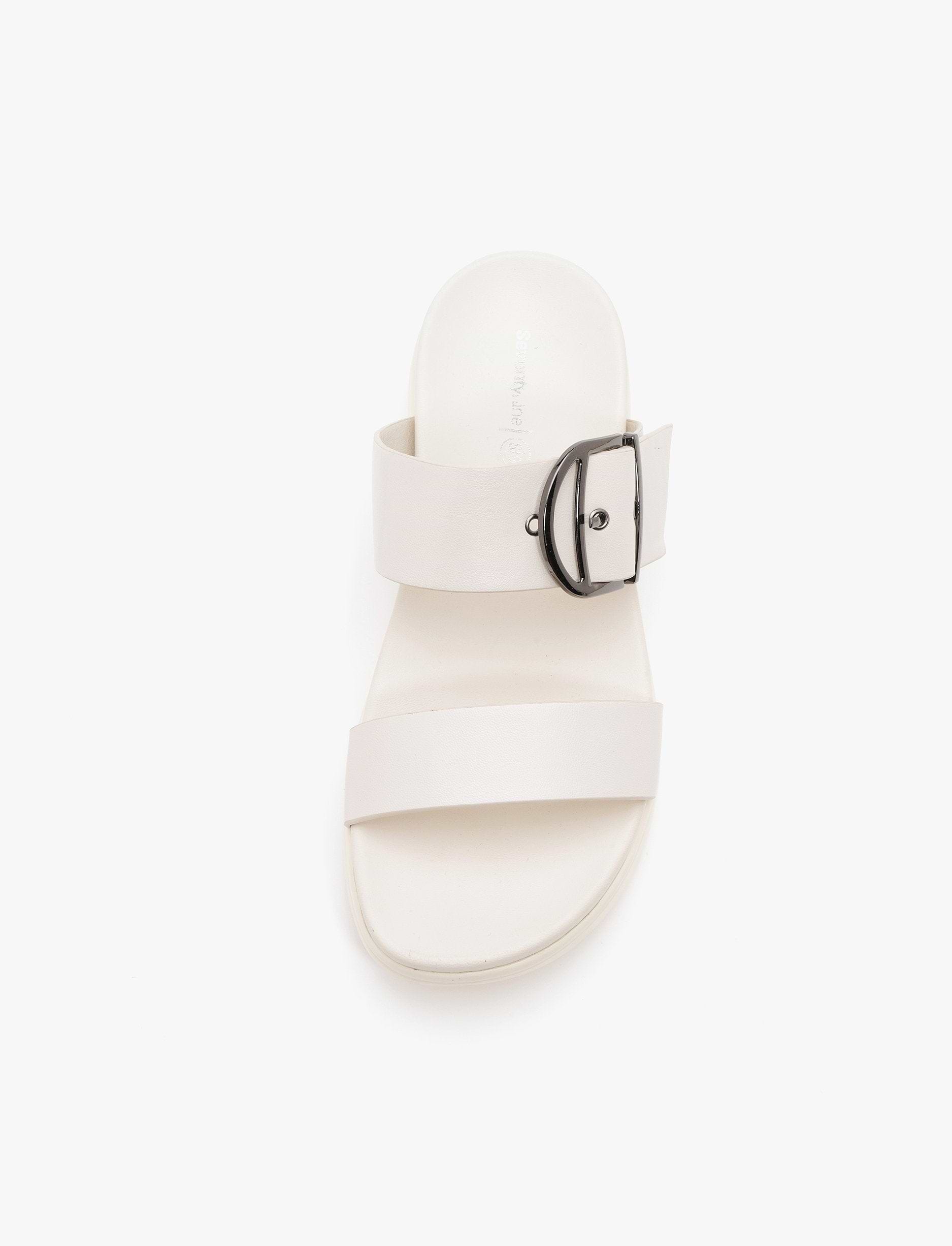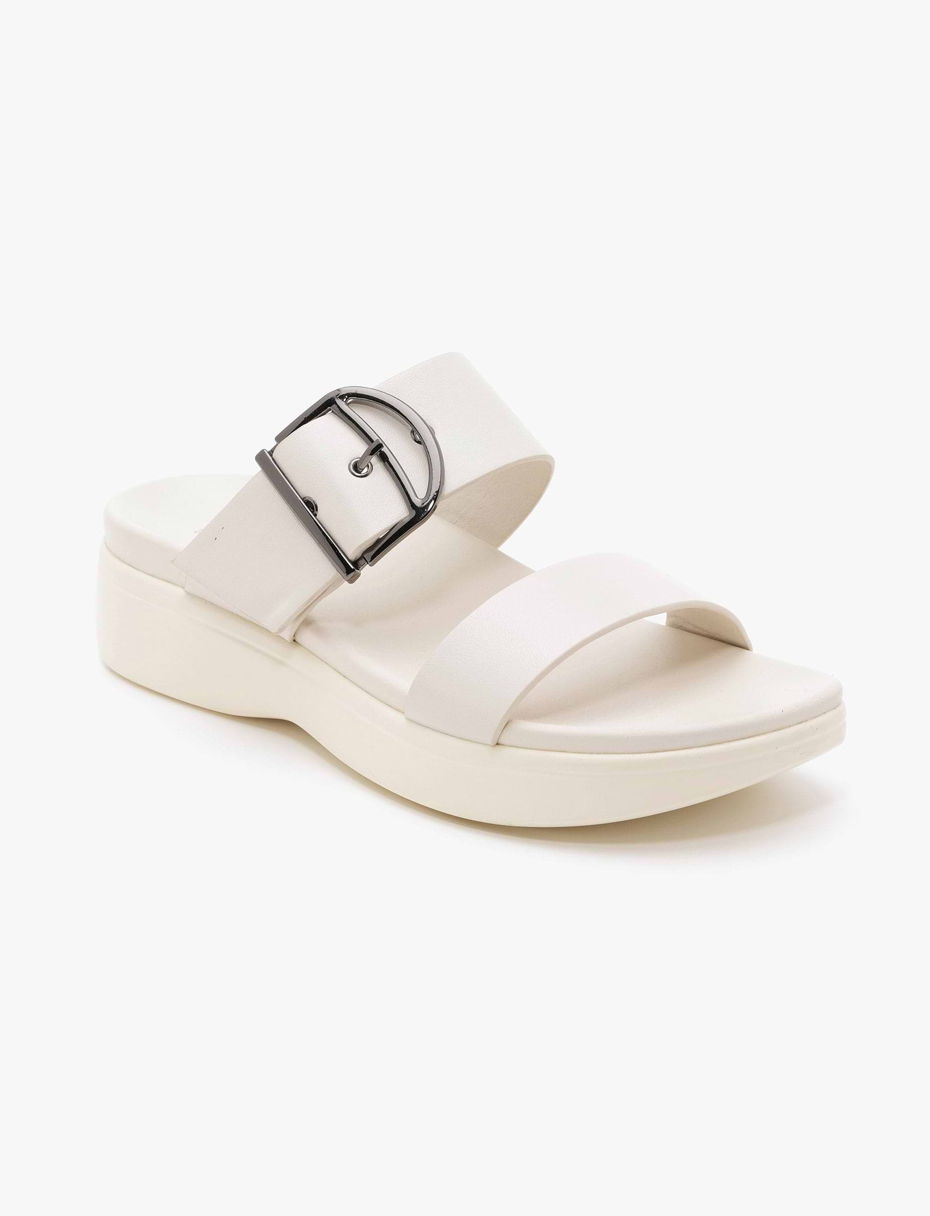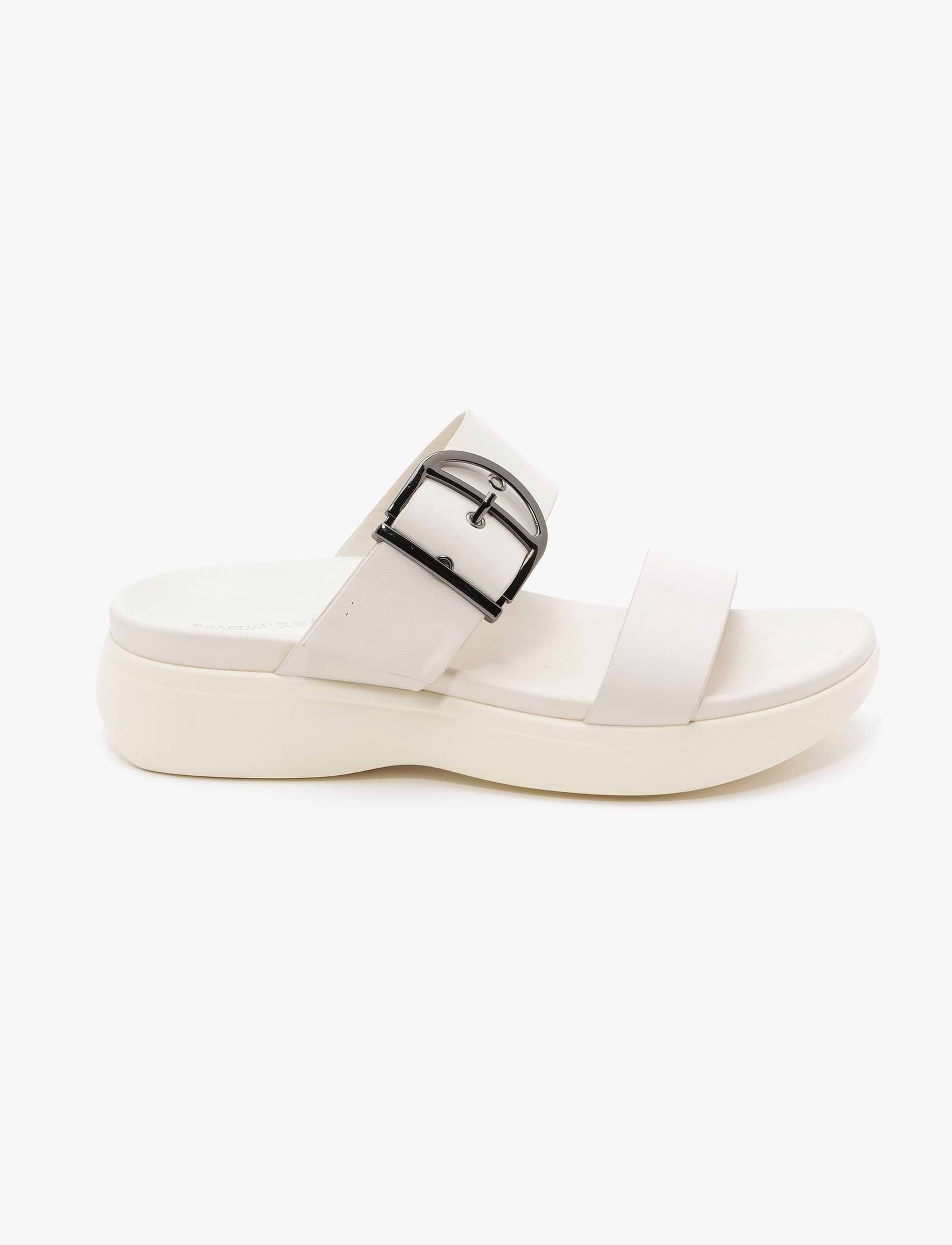 כפכפי פלטפורמה עם שתי רצועות רחבות ורצועת אבזם מתכווננת להשלמת המראה. מבנה נקי ומעודן, סוליה מוגבהת לנוחות ותוספת גובה, ועיצוב שמתאים גם ללבוש קז'ואלי וגם להופעות אלגנטיות בקיץ.