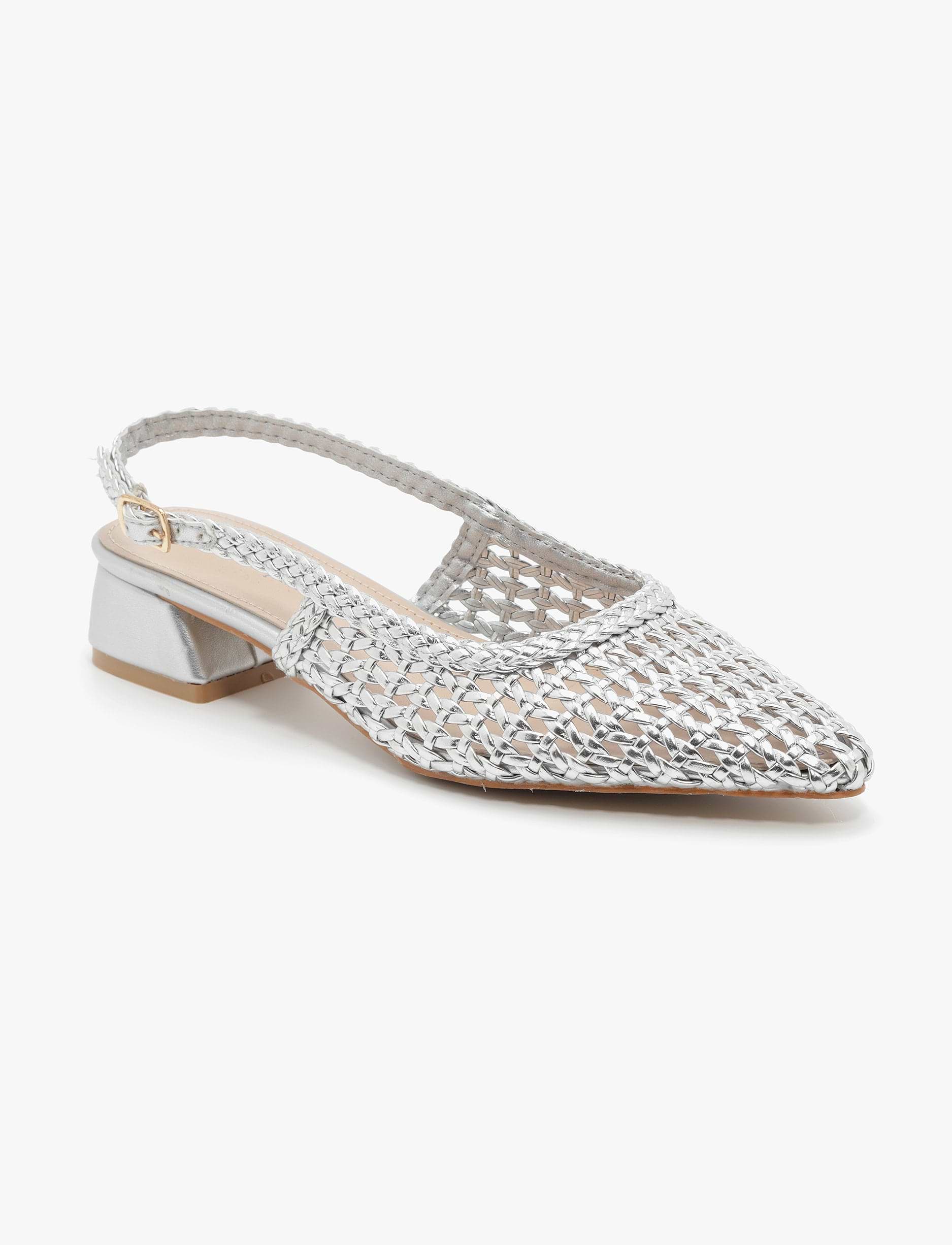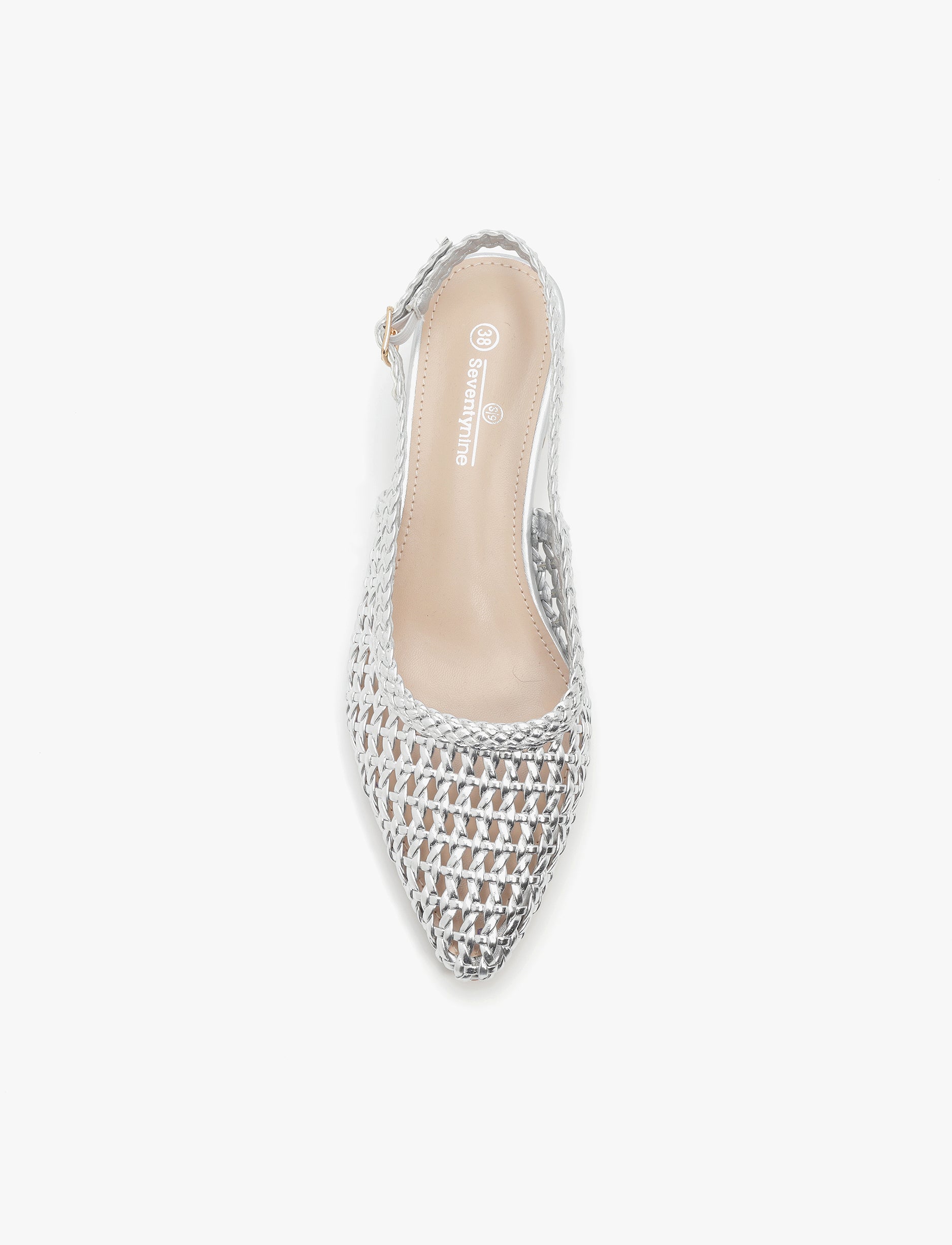 נעלי פלישיה מבית Seventy Nine מציגות שילוב אלגנטי בין עיצוב קלוע למראה נשי מוקפד. החלק העליון בדוגמה קלועה מעניק מראה קיצי ואוורירי, בעוד רצועת העקב המתכווננת מספקת התאמה נוחה ויציבה לרגל. העקב המרובע מוסיף גובה במראה עדין ונוח להליכה, ומתאים לשילוב עם לוק יומיומי או הופעה אלגנטית.